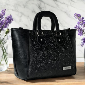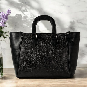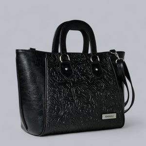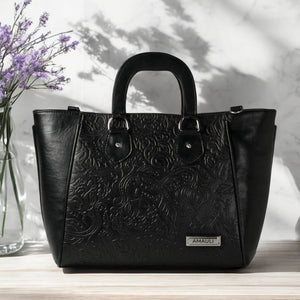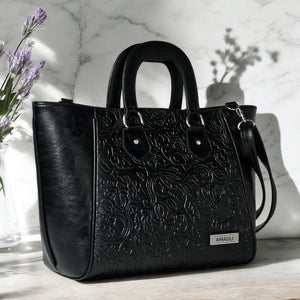 JACINTA, hecho en piel vacuno troquelado y disponible en color negro, es un reflejo de la mujer que elige funcionalidad sin renunciar al estilo. Los detalles troquelados añaden carácter, elevando el diseño con un toque único.