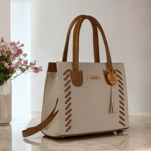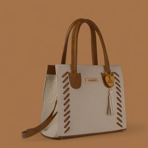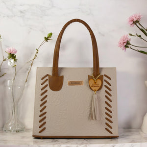 El bolso LUNA, confeccionado en piel vacuno troquelado, captura la esencia de la delicadeza y la funcionalidad. Disponible en un tono beige suave, este modelo es perfecto para quienes buscan un diseño sobrio pero lleno de detalles únicos.